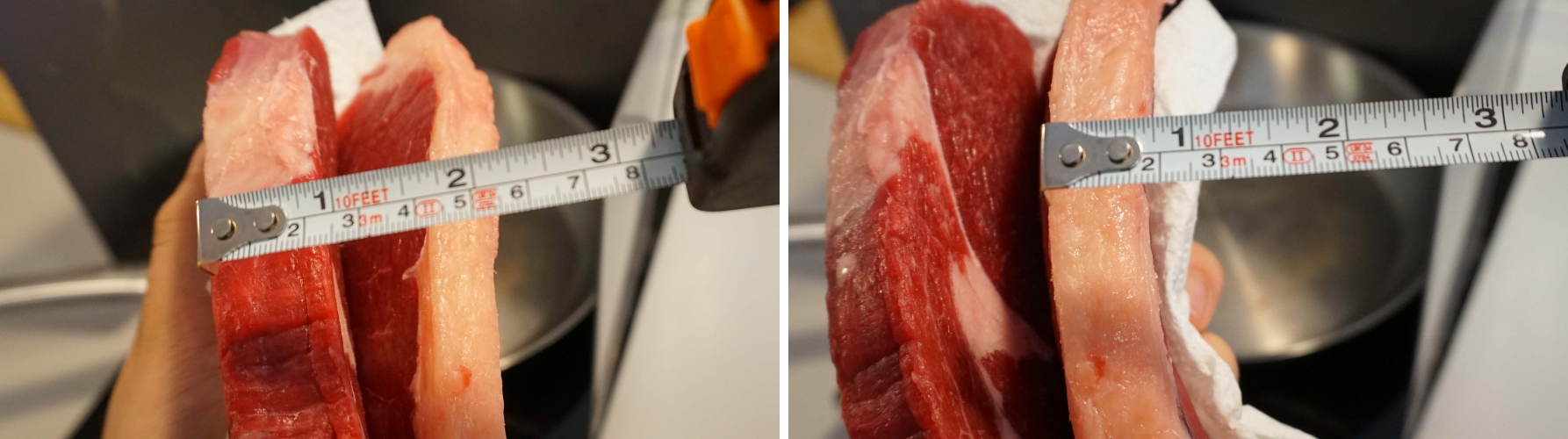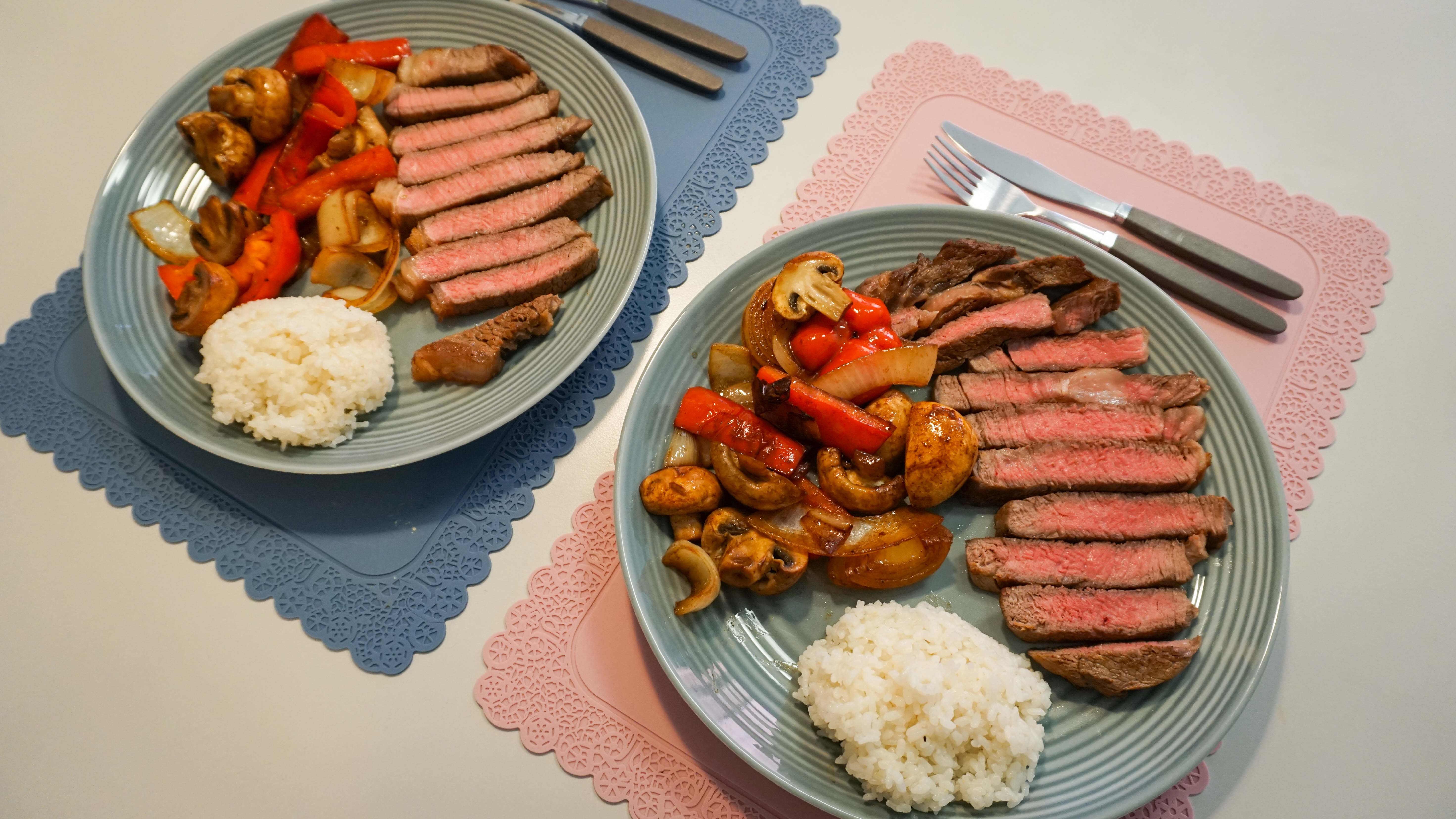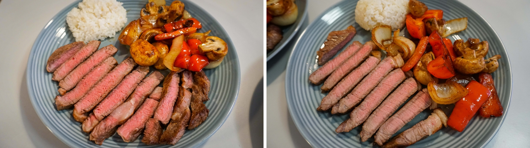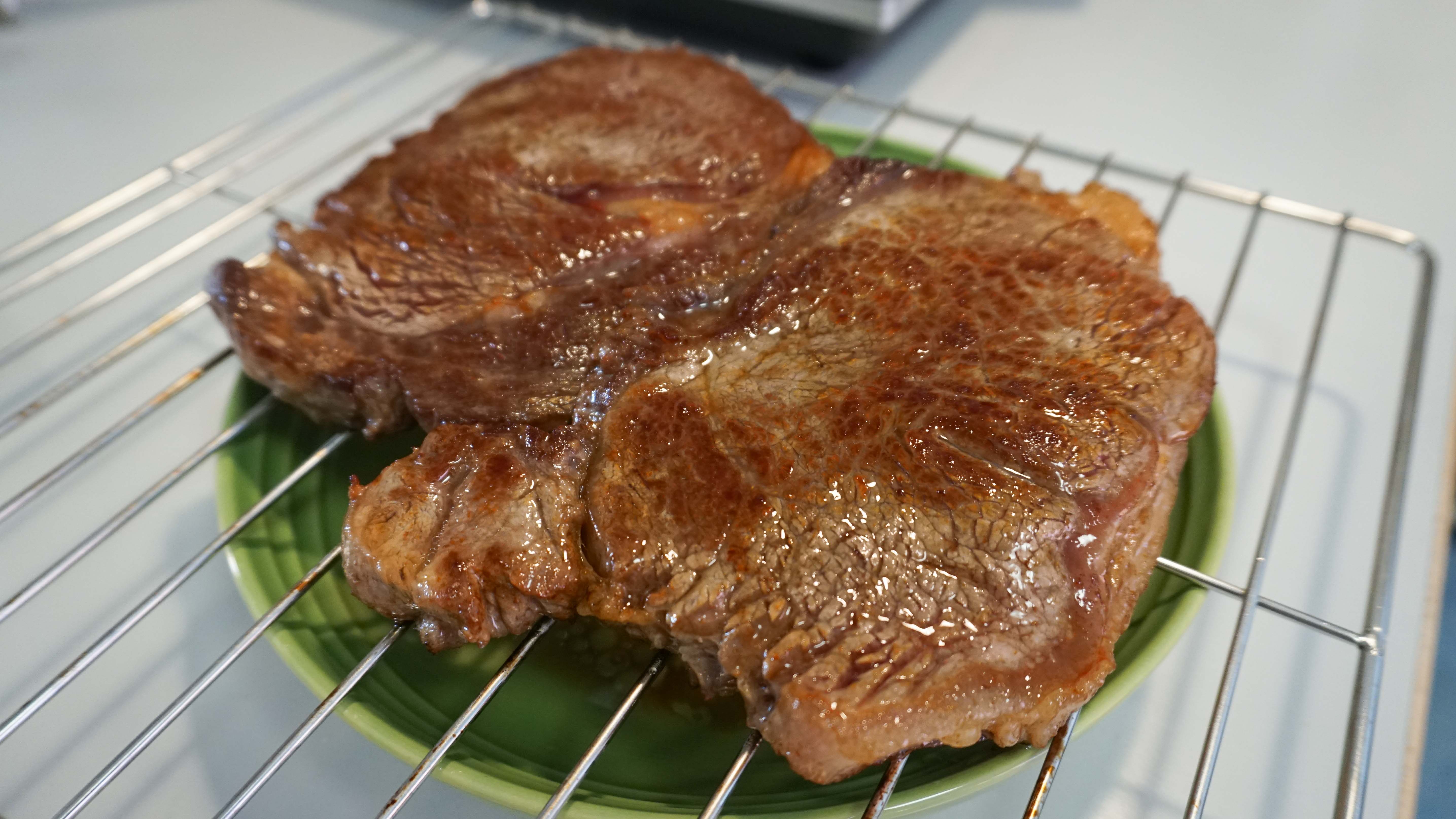 립 아이 스테이크는 총 4분, 럼프 스테이크는 총 3분 30초 익혔습니다.