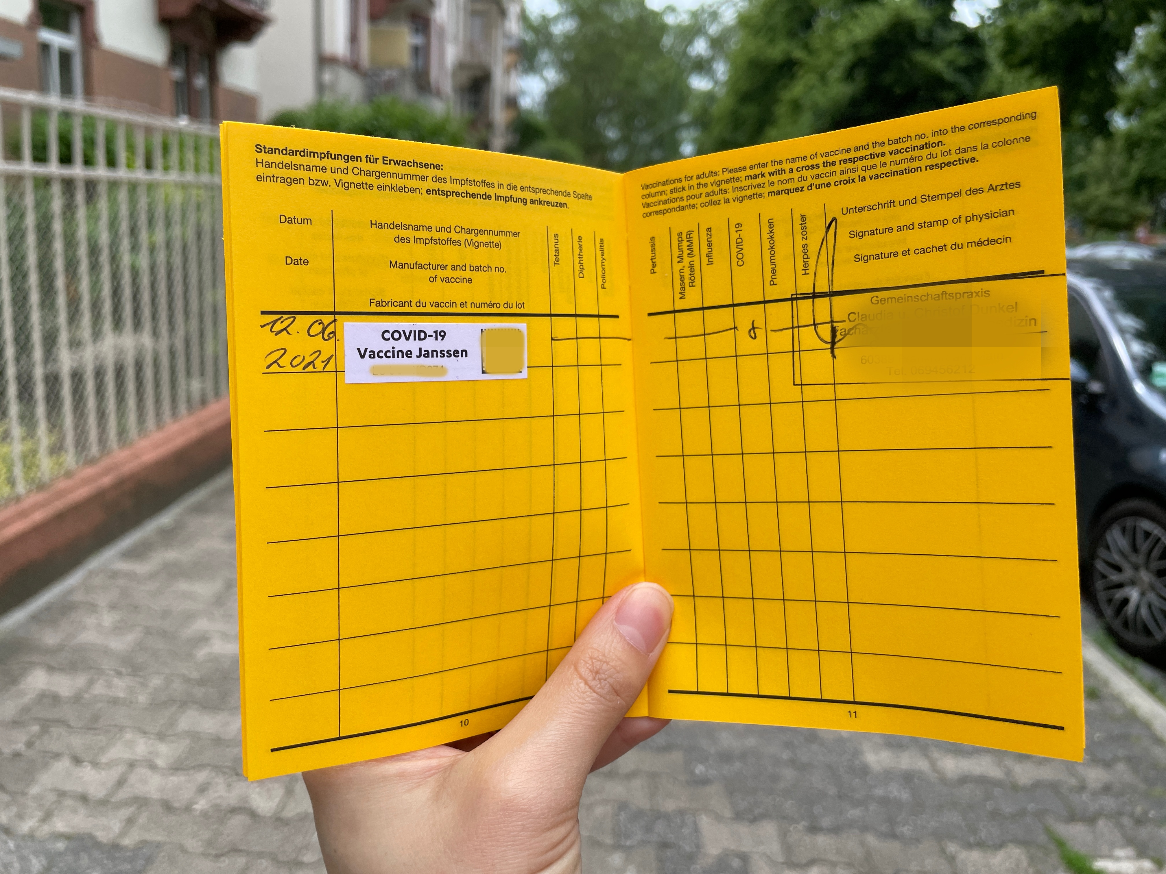 저는 6월 12일에 독일 프랑크푸르트에서 존슨앤존슨 얀센 백신 접종하였습니다.